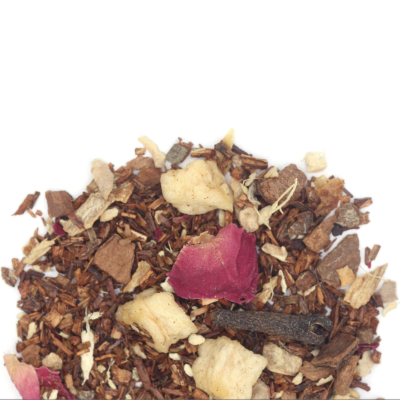 Rooibos Tea, Cinnamon, Orange, Apple Pieces, Cloves, Ginger, Rose Petals, Natural Spicy Cinnamon Flavor, Natural Orange Flavor & Natural Almond Flavor